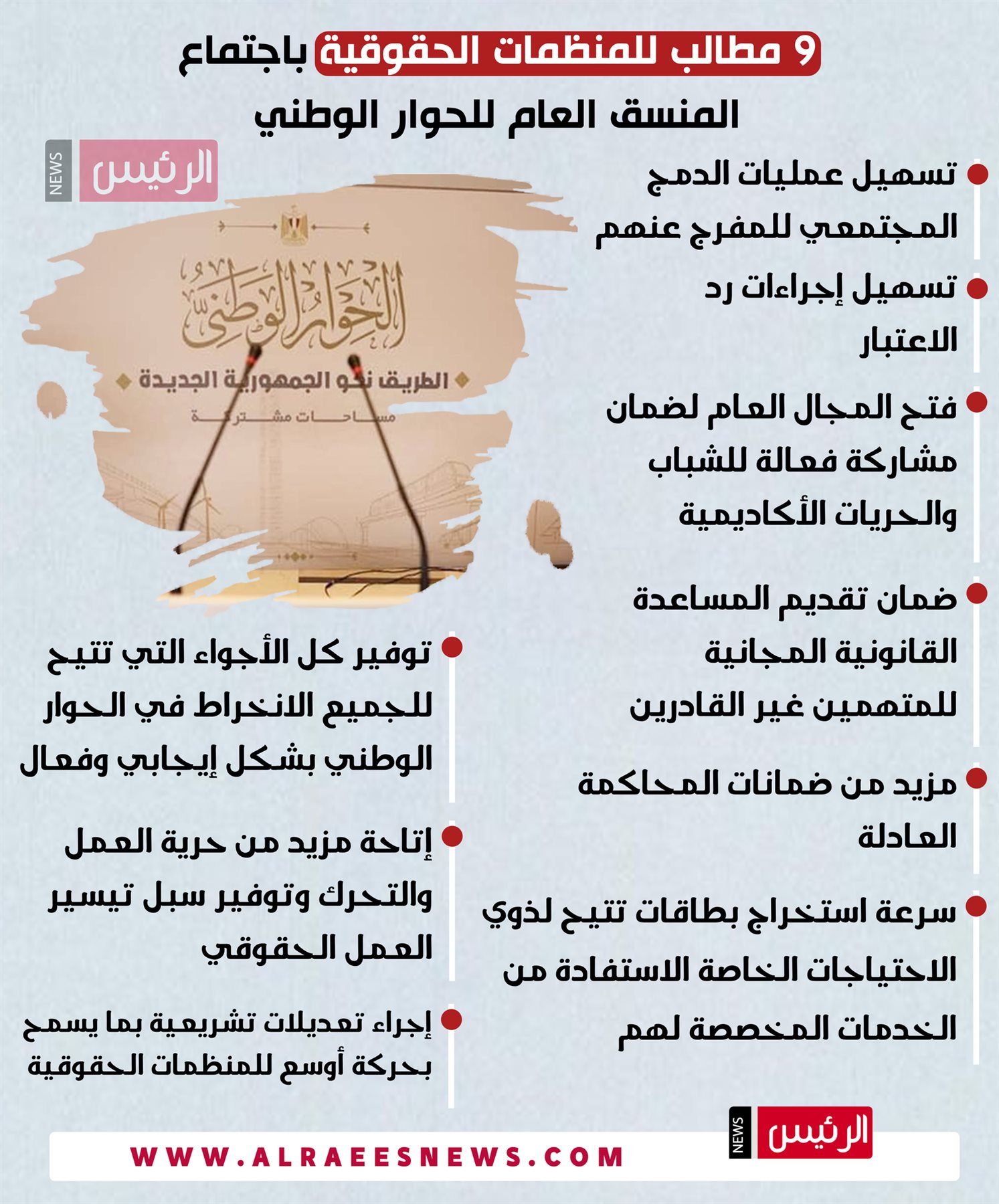 9 مطالب للمنظمات الحقوقية خلال اجتماعها مع المنسق العام للحوار الوطني