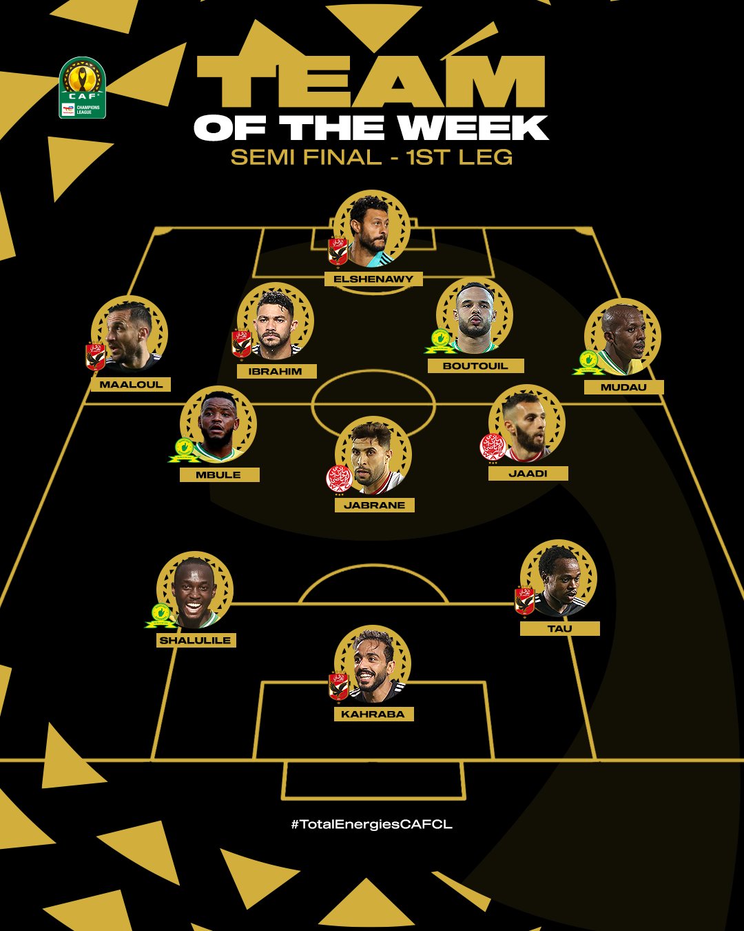 وضم التشكيل المثالي لذهاب نصف نهائي دوري أبطال إفريقيا، 5 لاعبين من الأهلي، و4 من صن داونز، وثنائي من الوداد المغربي.