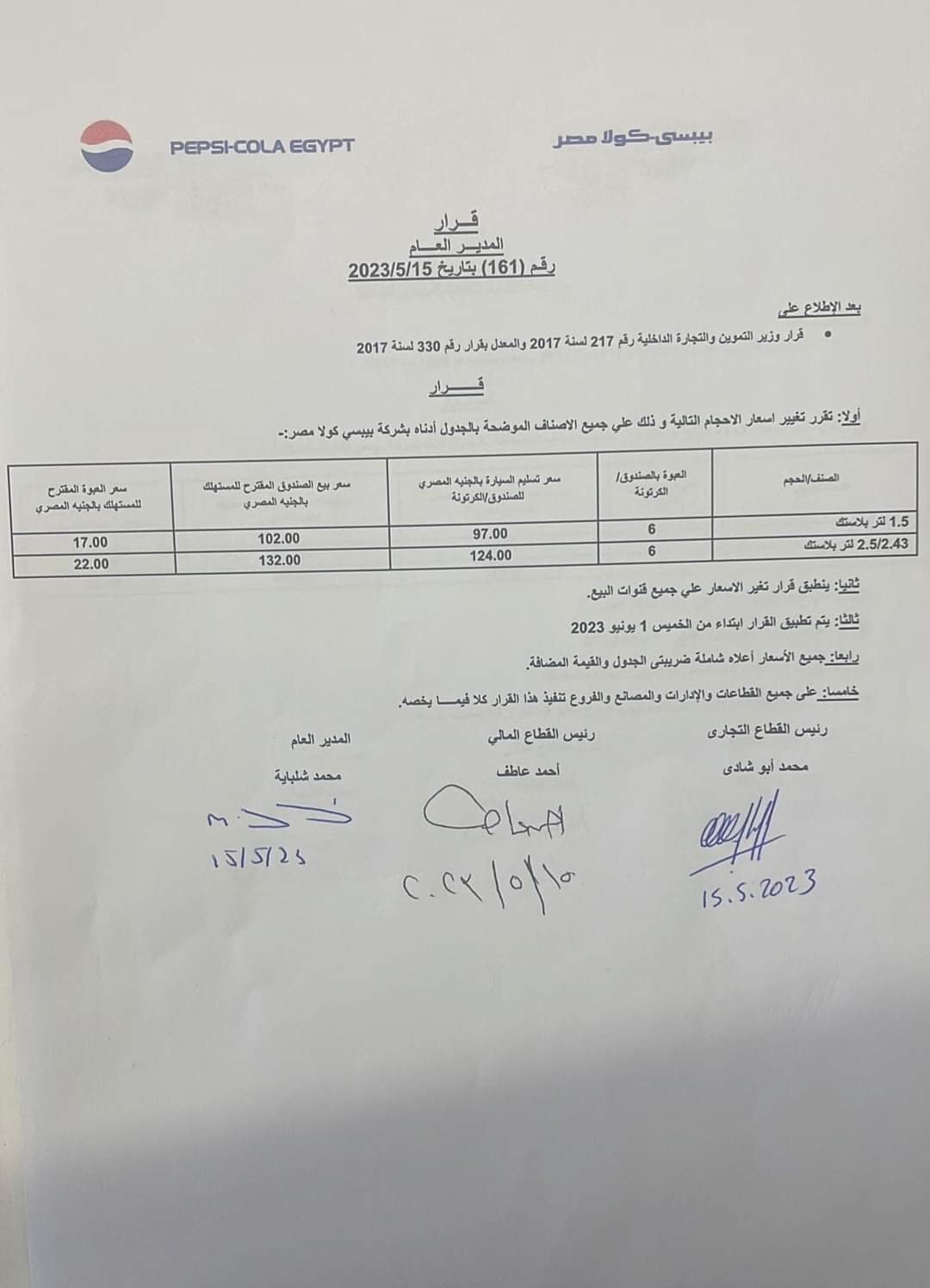 عاجل| بيبسي ترفع الأسعار بقيمة 2.5 جنيه في هذا الموعد (مستند)