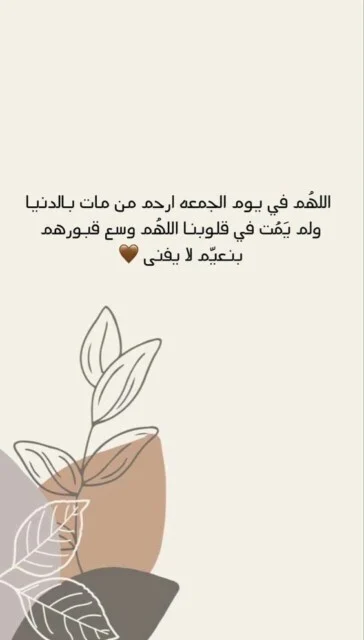 - اللهم في يوم الجمعة جنّة الفردوس لمَن أختفت أصواتهم، اللهم ارحم تِلك الوجوه النائمه، يارب اغفر لأرواح تراها ولا نراها، اللهم إسقي قبورهِم يالله برحمتك وعفوك، اللهم هب لهم بقدر دعاء الصالحين للأموآت رضوانًا اللهم اجعل قبورهم روضة من رياض الجنة.