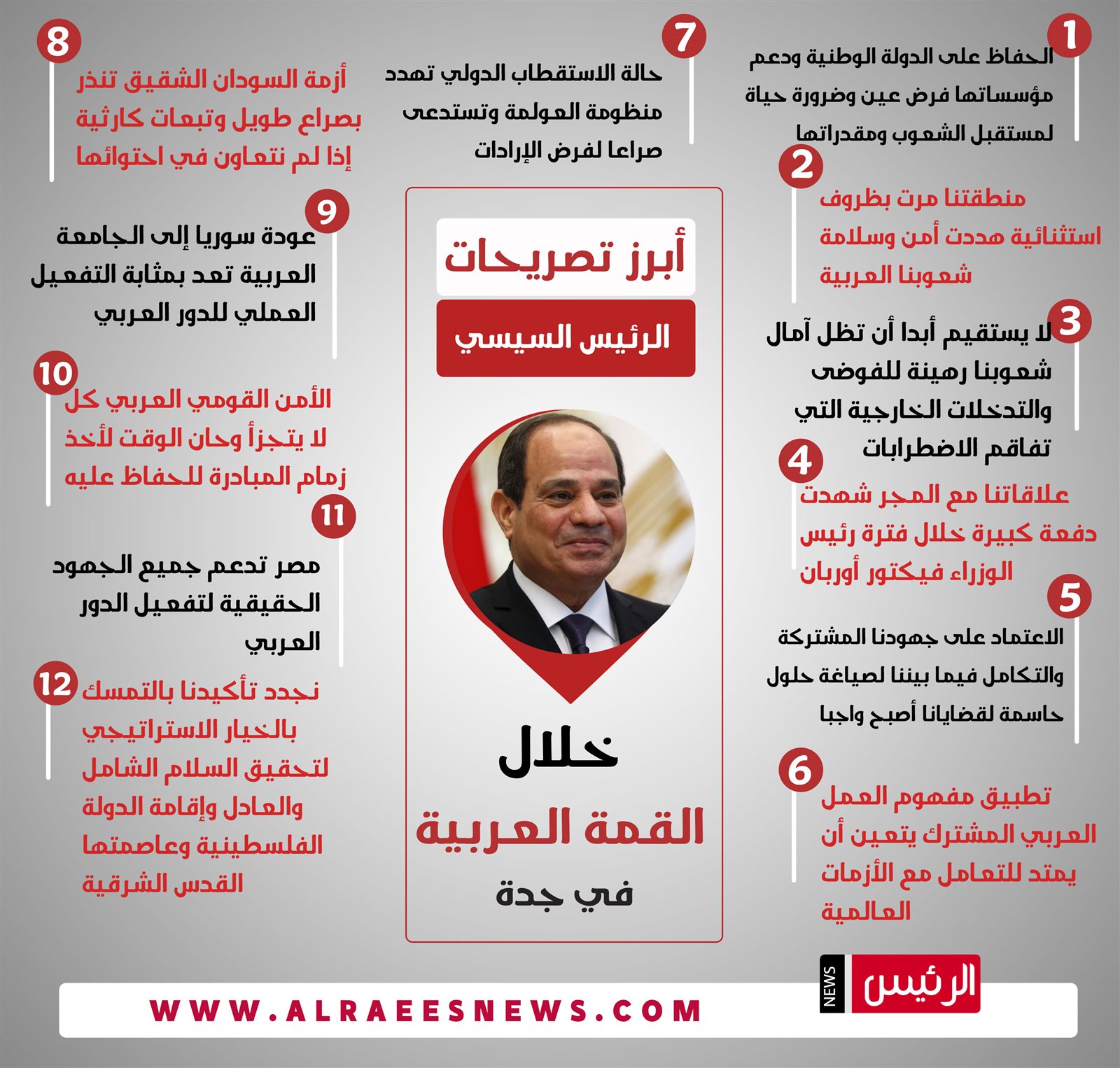أبرز تصريحات الرئيس السيسي خلال القمة العربية في جدة