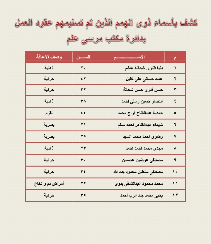 القوى العاملة: تسليم عقود عمل لـ12 من ذوى الهمم بالبحر الأحمر