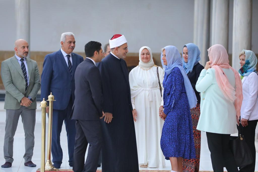 واستمعت قرينة الرئيس الأمريكي إلى شرح عن الجامع من رئيس جامعة الأزهر الدكتور سلامة داوود، الذي كان في استقبالها لدى وصولها.