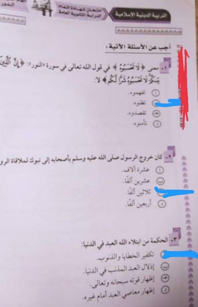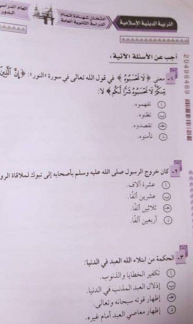 تسريب مادة الدين في امتحانات الصف الثالث الثانوي 2023| تسريبات التربية الدينية