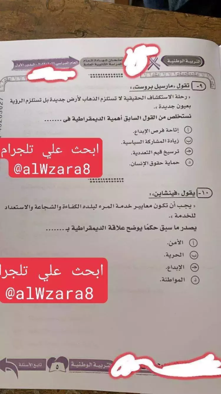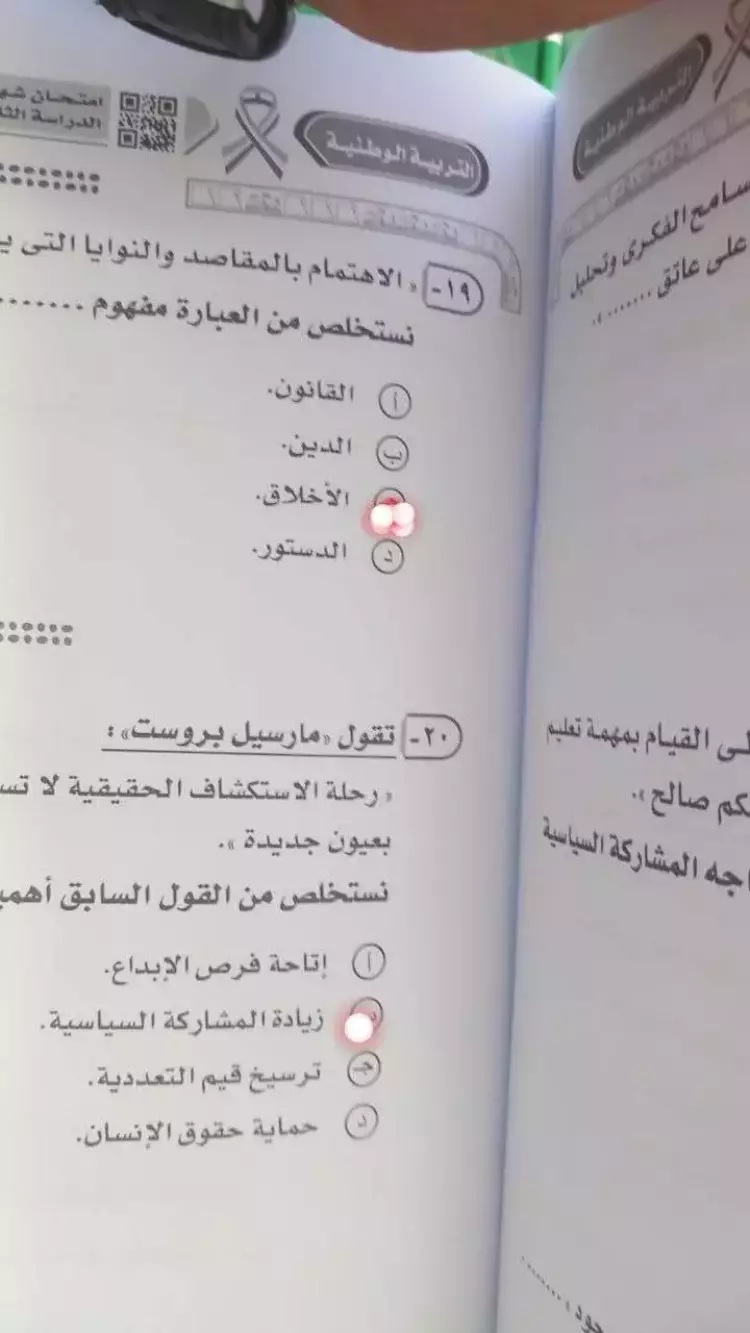 أسئلة امتحان التربية الوطنية للصف الثالث الثانوي 2023 جاءت على النحو التالي: