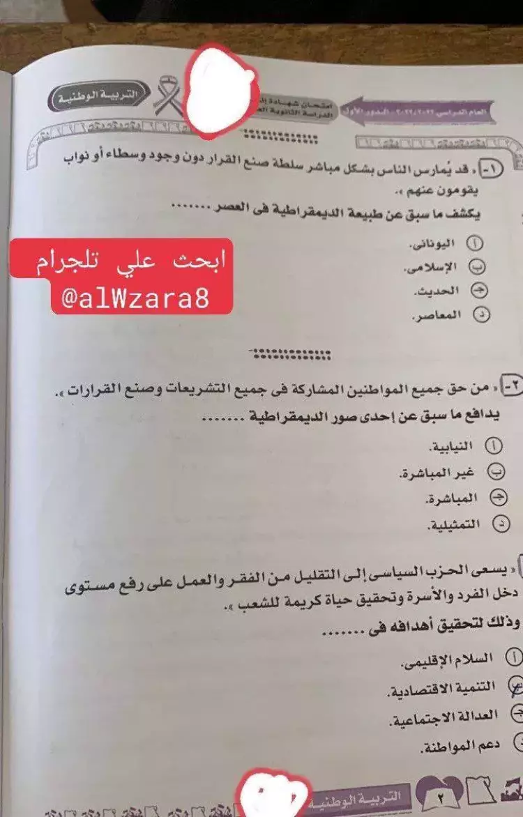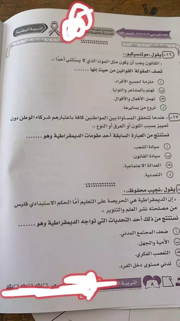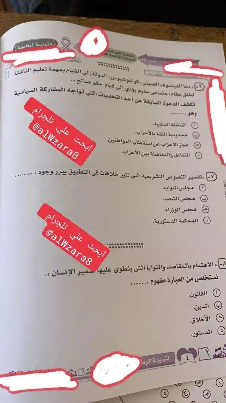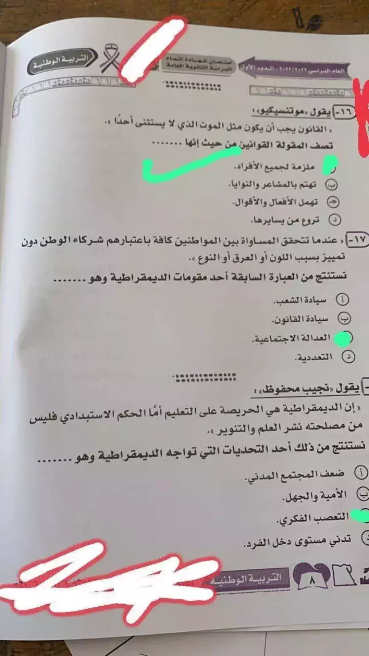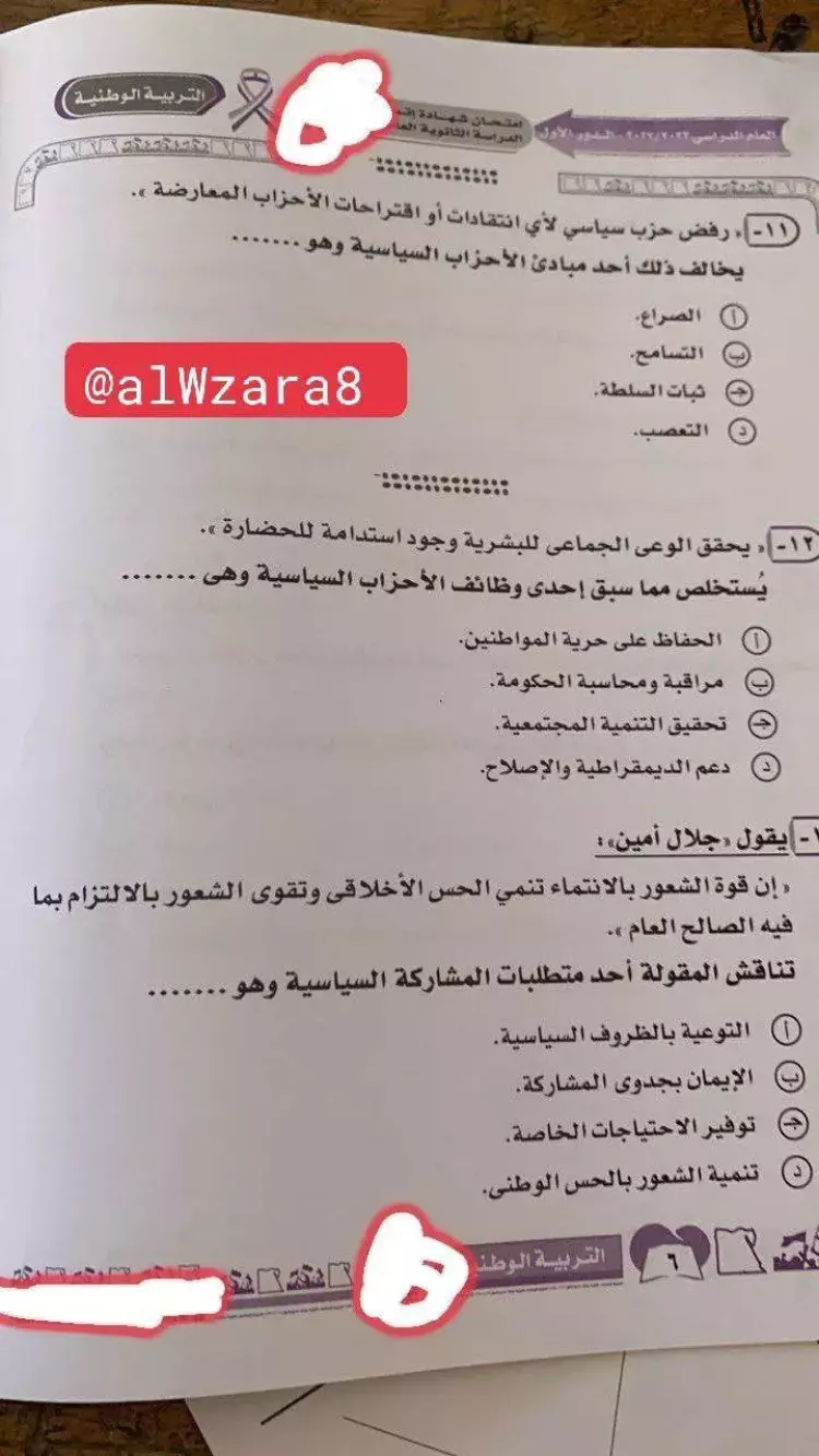 إجابات امتحان التربية الوطنية للصف الثالث الثانوي 2023 جاءت على النحو التالي: