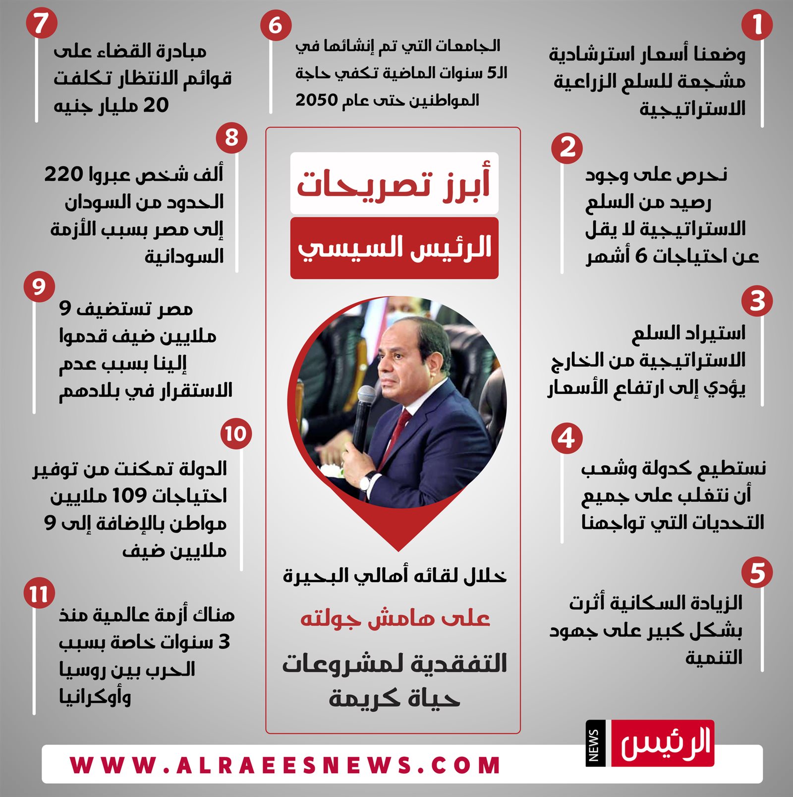 أبرز تصريحات الرئيس السيسي خلال تفقده عدد من المشروعات في قرية الأبعادية بالبحيرة