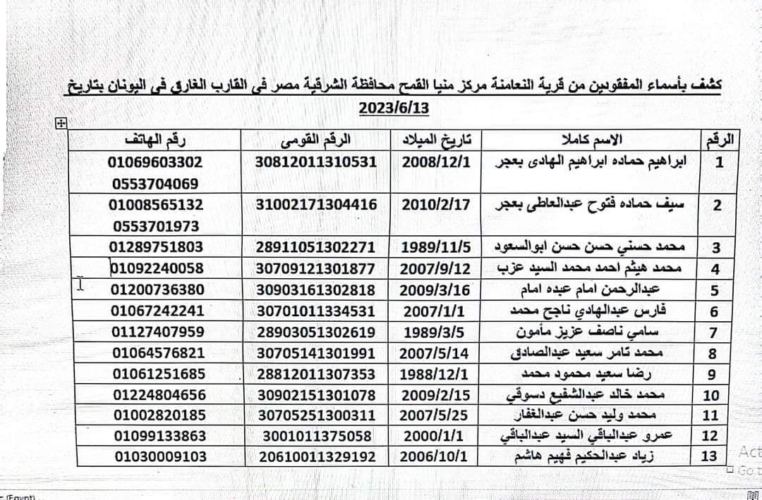 اتشحت عددا من قرى محافظة الشرقية بالسواد، على إثر الحادث الأليم الذي وقع الأربعاء الماضي قبالة السواحل اليونانية، بعد تعرض مركب هجرة غير شرعية للغرق، وكان يحمل على متنه قرابة 750 شخصا من مختلف الأعمار.