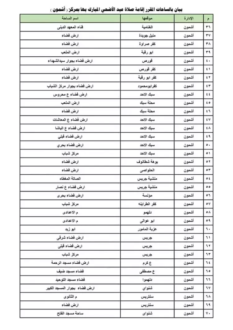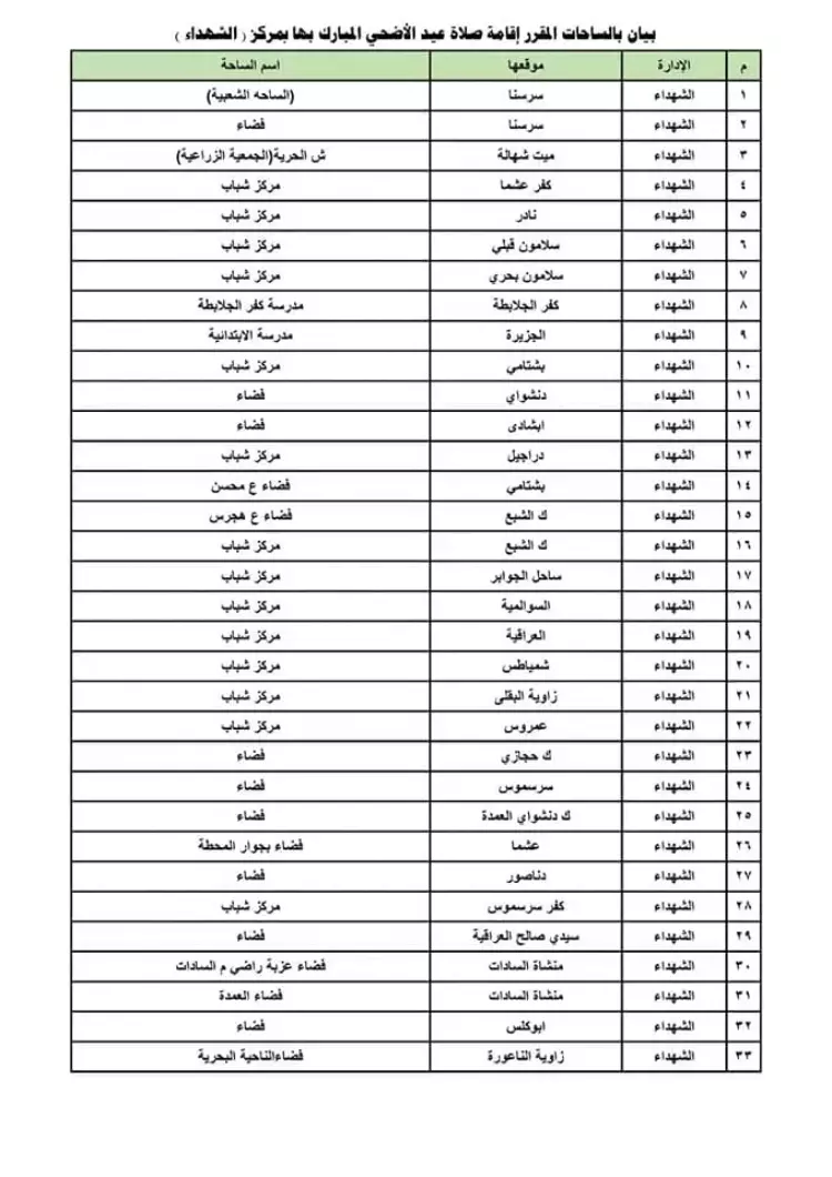 أماكن صلاة عيد الأضحى 2023 في مركز الشهداء: 32 ساحة.