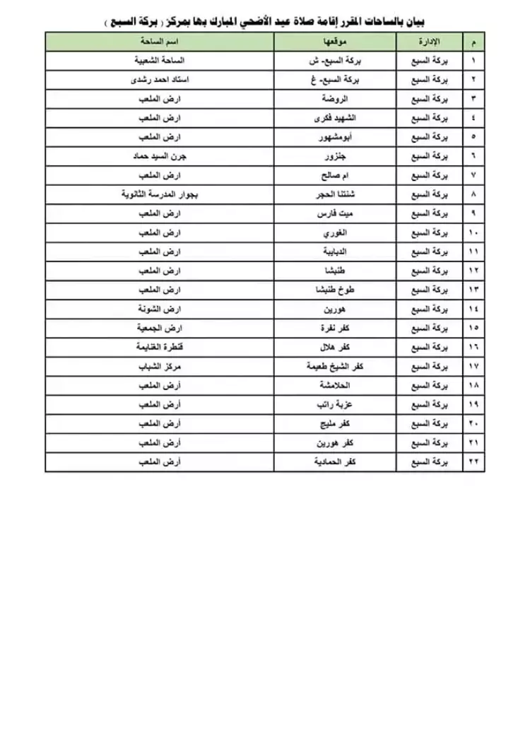 أماكن صلاة عيد الأضحى 2023 في مركز بركة السبع: 21 ساحة.