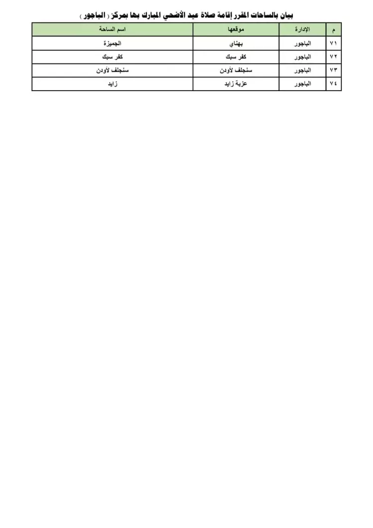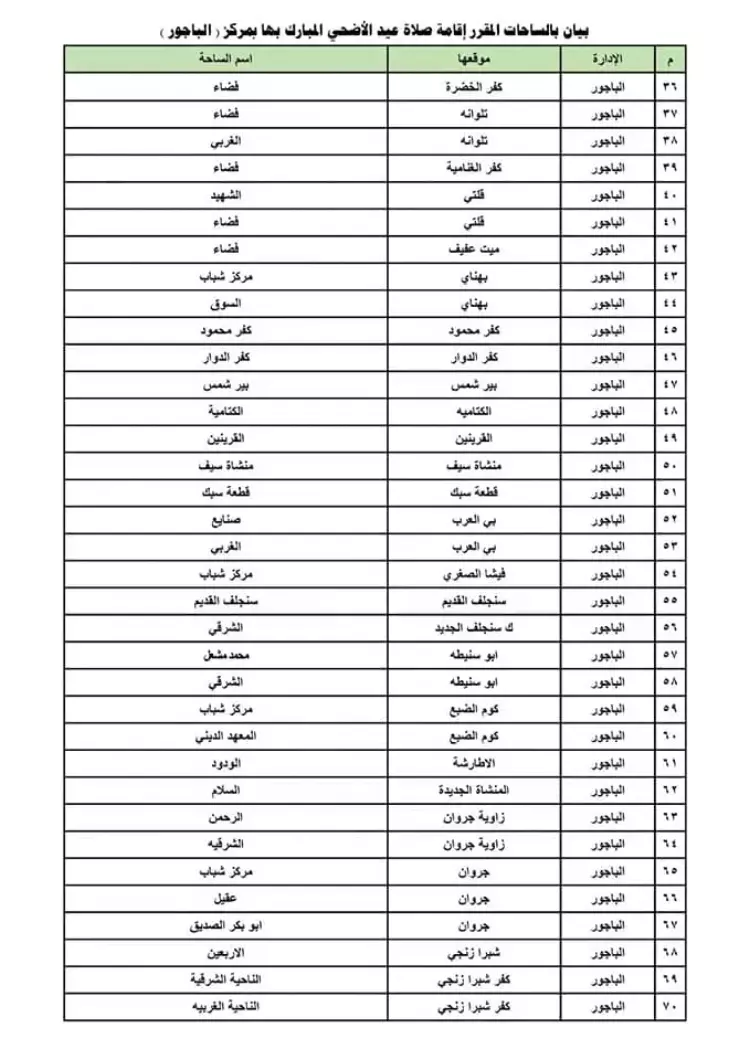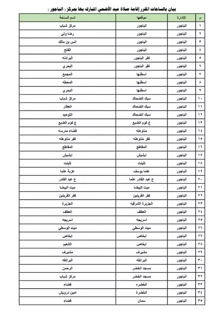 أماكن صلاة عيد الأضحى 2023 في مركز الباجور: 73 ساحة.