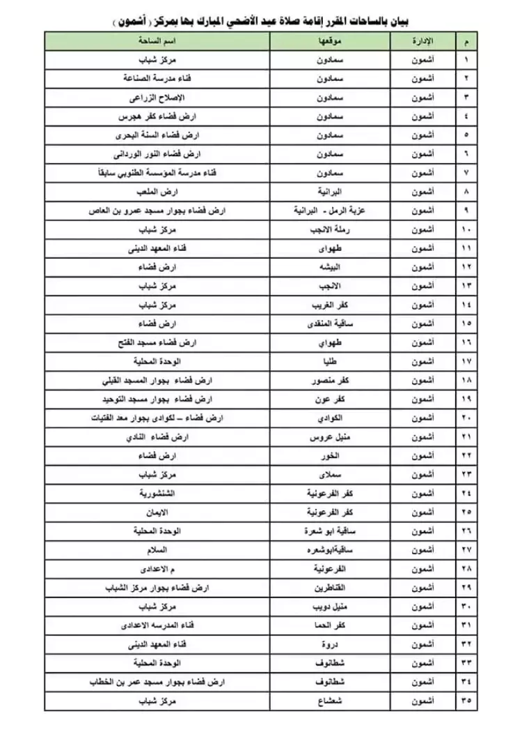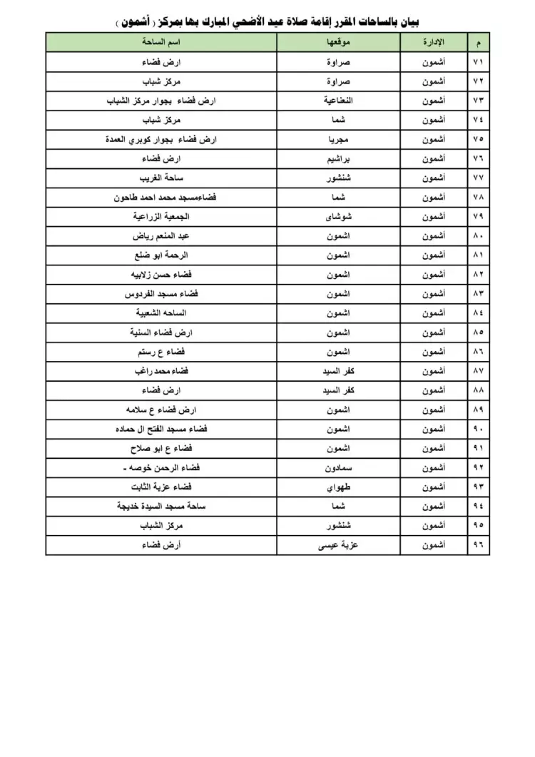 أماكن صلاة عيد الأضحى 2023 في مركز أشمون: 95 ساحة.