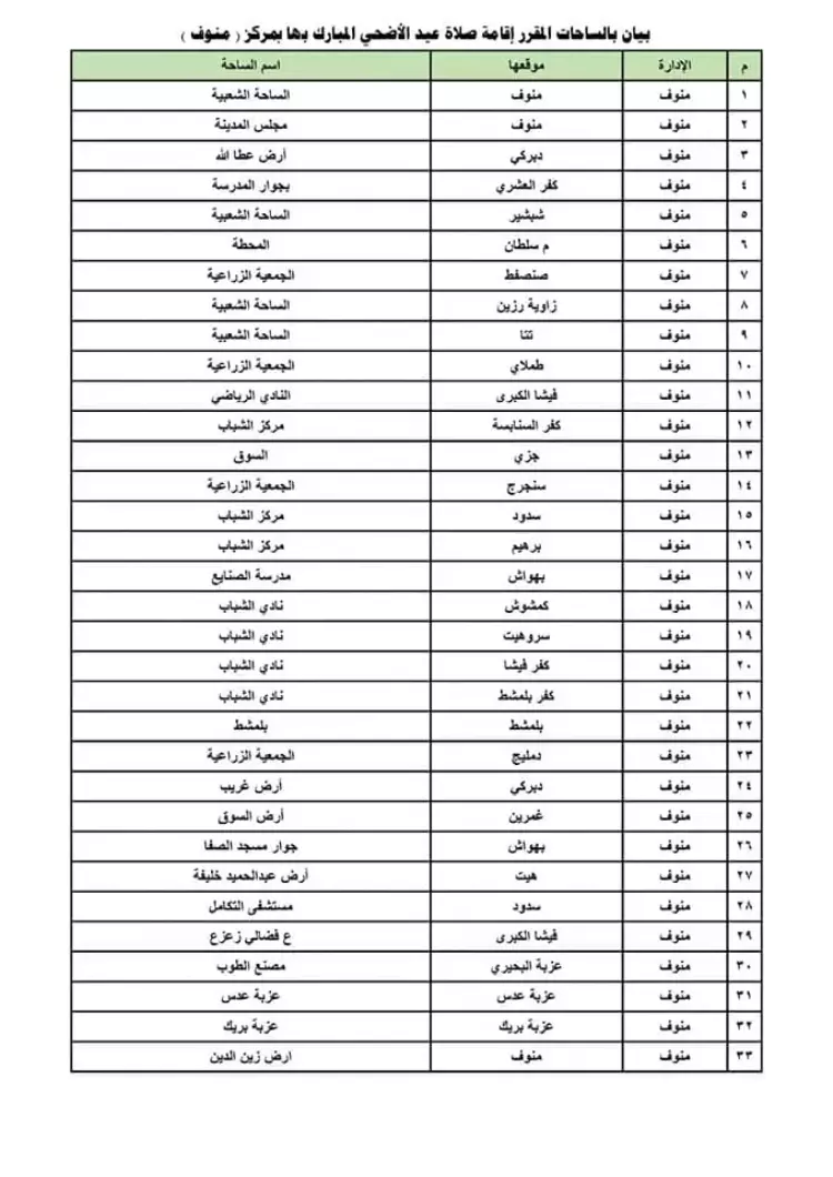أماكن صلاة عيد الأضحى 2023 في مركز تلا: 40 ساحة.