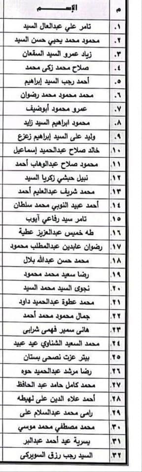 وضمت قائمة المفرج عنهم 32 اسمًا، أبرزهم سيد رجب السويركي، مالك سلسلة التوحيد والنور.