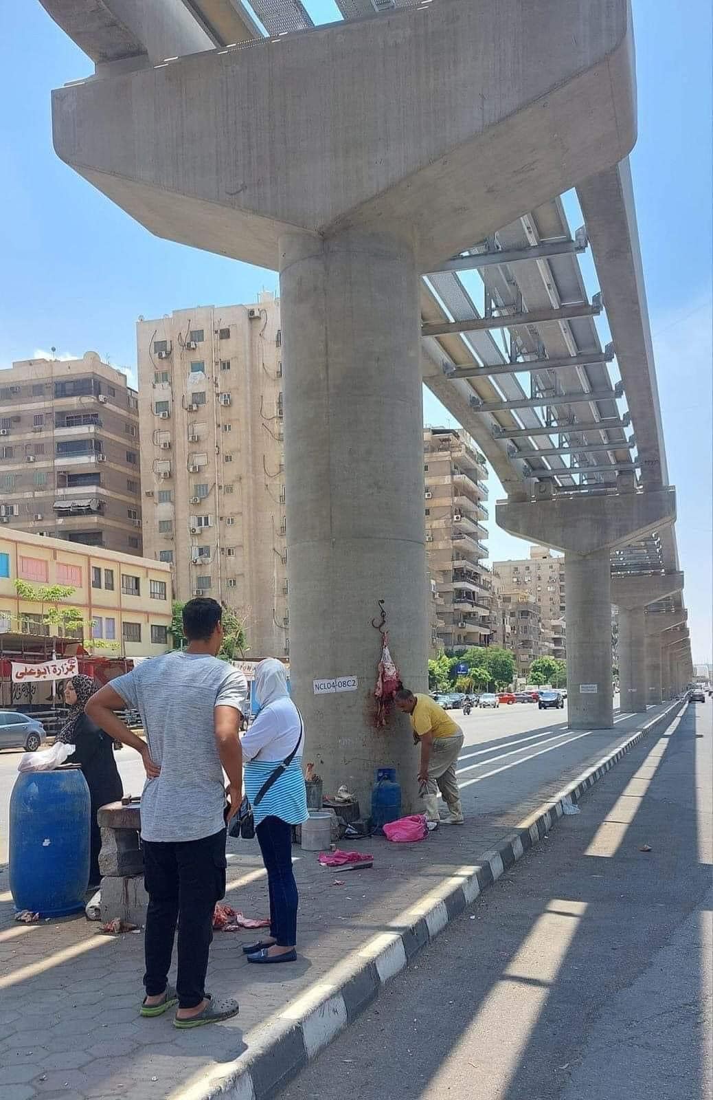 أول تعليق من محافظة القاهرة على "صور بيع اللحمة" على أعمدة المونوريل