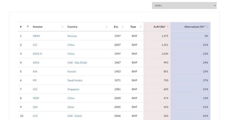 وجاء صندوق التقاعد الحكومي النرويجي (NBIM)، بالمركز الأول عالميًا بأصول بلغت 1.375 تريليون دولار، بينما حلّ صندوق شركة الصين للاستثمار (CIC) بالمركز الثاني بإجمالي أصول 1.351 تريليون دولار.