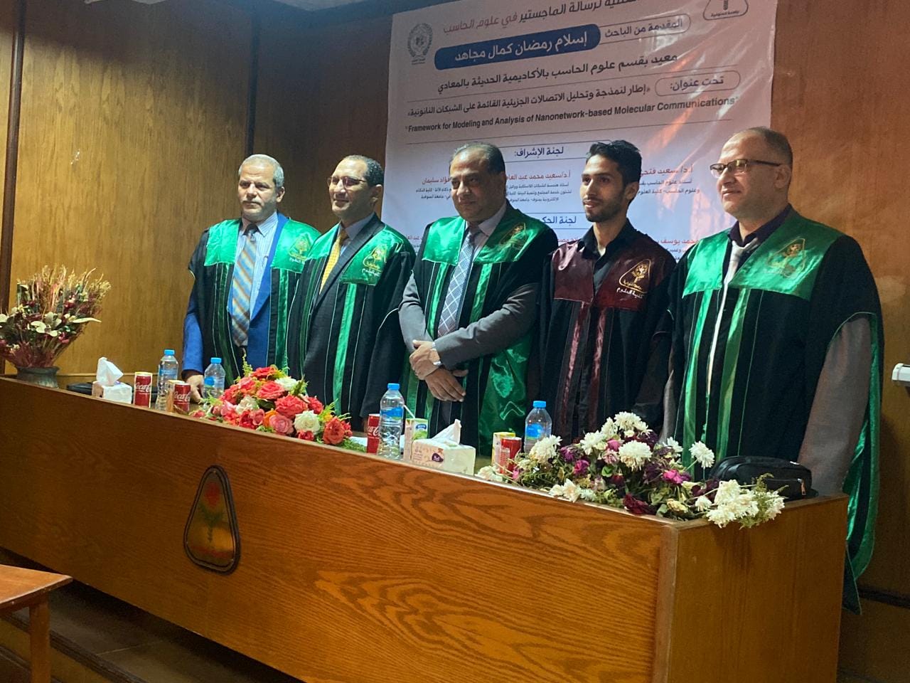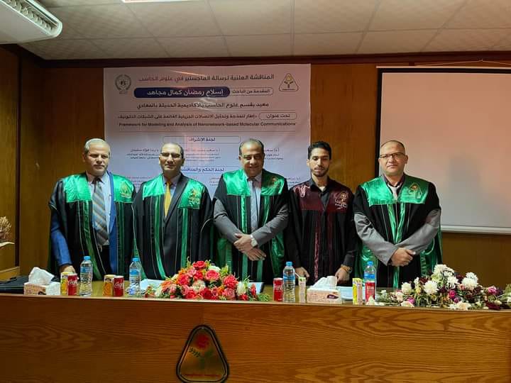 في رحاب كلية العلوم جامعة المنوفية، ناقش الباحث إسلام رمضان كمال رسالة الماجستير التي جاءت تحت عنوان: إطار لنمذجة وتحليل الاتصالات الجزيئية القائمة على الشبكات النانونية.