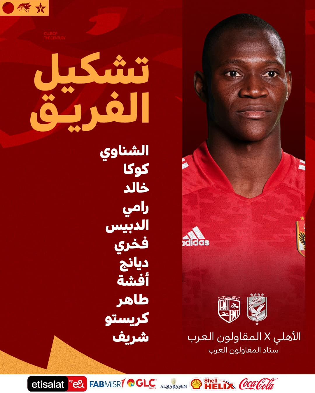 وجاء تشكيل الأهلي لمواجهة المقاولون العرب: