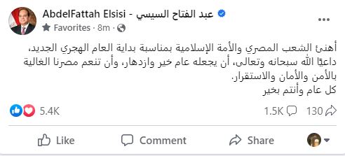 جاء هذا عبر الصفحة الرسمية للرئيس عبد الفتاح السيسي على "فيسبوك".