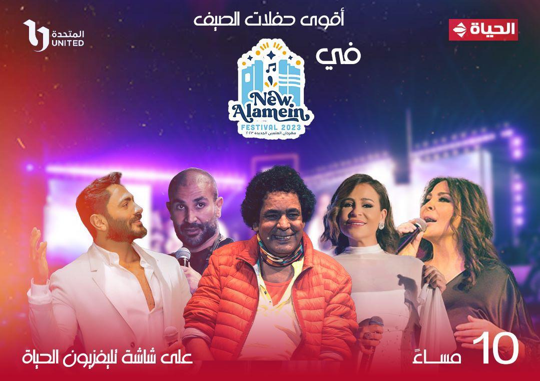وتذيع شبكة تليفزيون الحياة، نخبة من الحفلات والعروض الفنية المُقدمة في مهرجان العلمين الدولي، حيث شهدت مدينة العلمين الجديدة على مدار الأيام القليلة الماضية عدة حفلات فنية وسط مشاركة فنية واسعة، بداية من حفلات النجوم محمد منير، وتامر حسني، وأحمد سعد، ومدحت صالح، وريهام عبدالحكيم، وصولًا لحفلات النجوم تامر عاشور واليسا أمس.