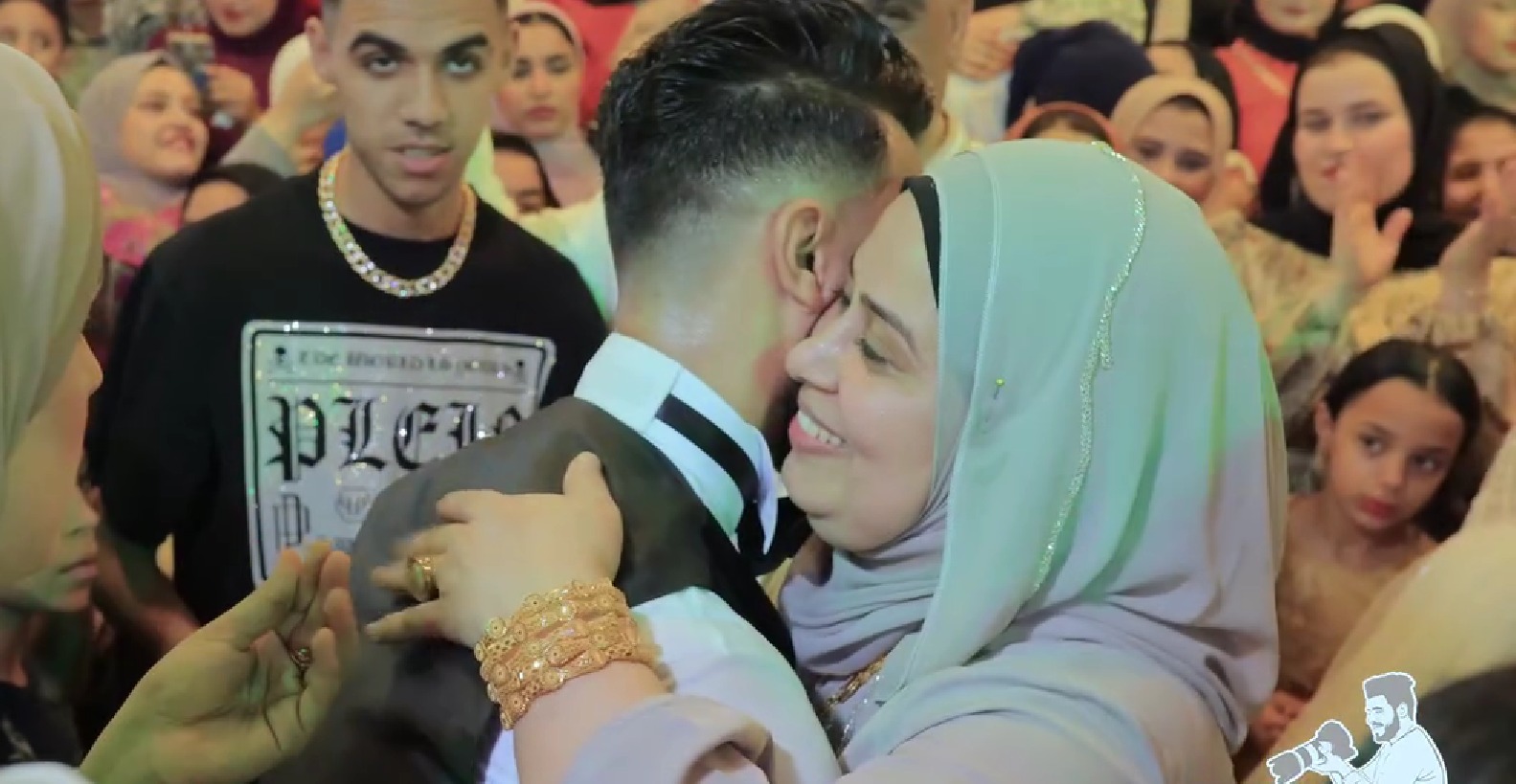 ووثق المصور مصطفى حجازي، لحظة عفوية اجتمع فيها العريس وشقيقه ووالدهما لإهداء والدتهما قلادة ذهبية وخاتم يزن 100 جرامًا أمام الحضور.