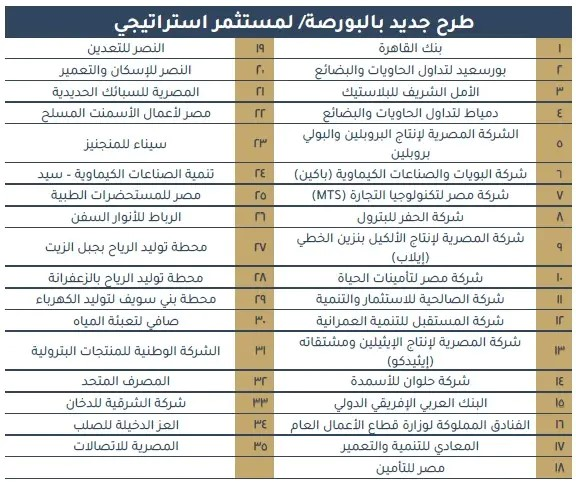 وجاءت قائمة الشركات المقرر طرح حصص فيها أمام المستثمرين خلال شهر سبتمبر الجاري كالتالي: