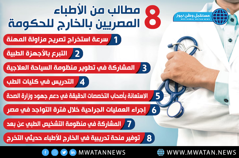 إنفوجراف| الحكومة ترحب برغبة الأطباء المصريين بالخارج في دعم المنظومة الصحية