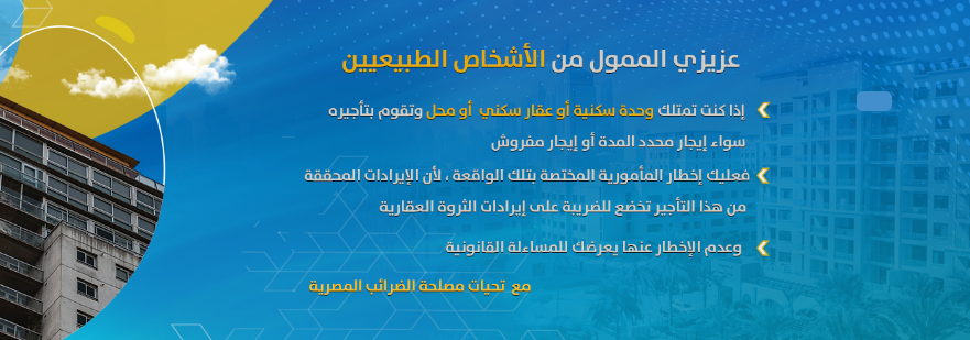 جددت مصلحة الضرائب مطالبتها للممولين من الأشخاص الطبيعيين الذين يمتلكون وحدة سكنية أو وحدة مصيفية أو محل، ويقومون بتأجير أي منها سواء إيجار محدد المدة أو إيجار مفروش، بضرورة إخطار المأمورية المختصة بذلك.