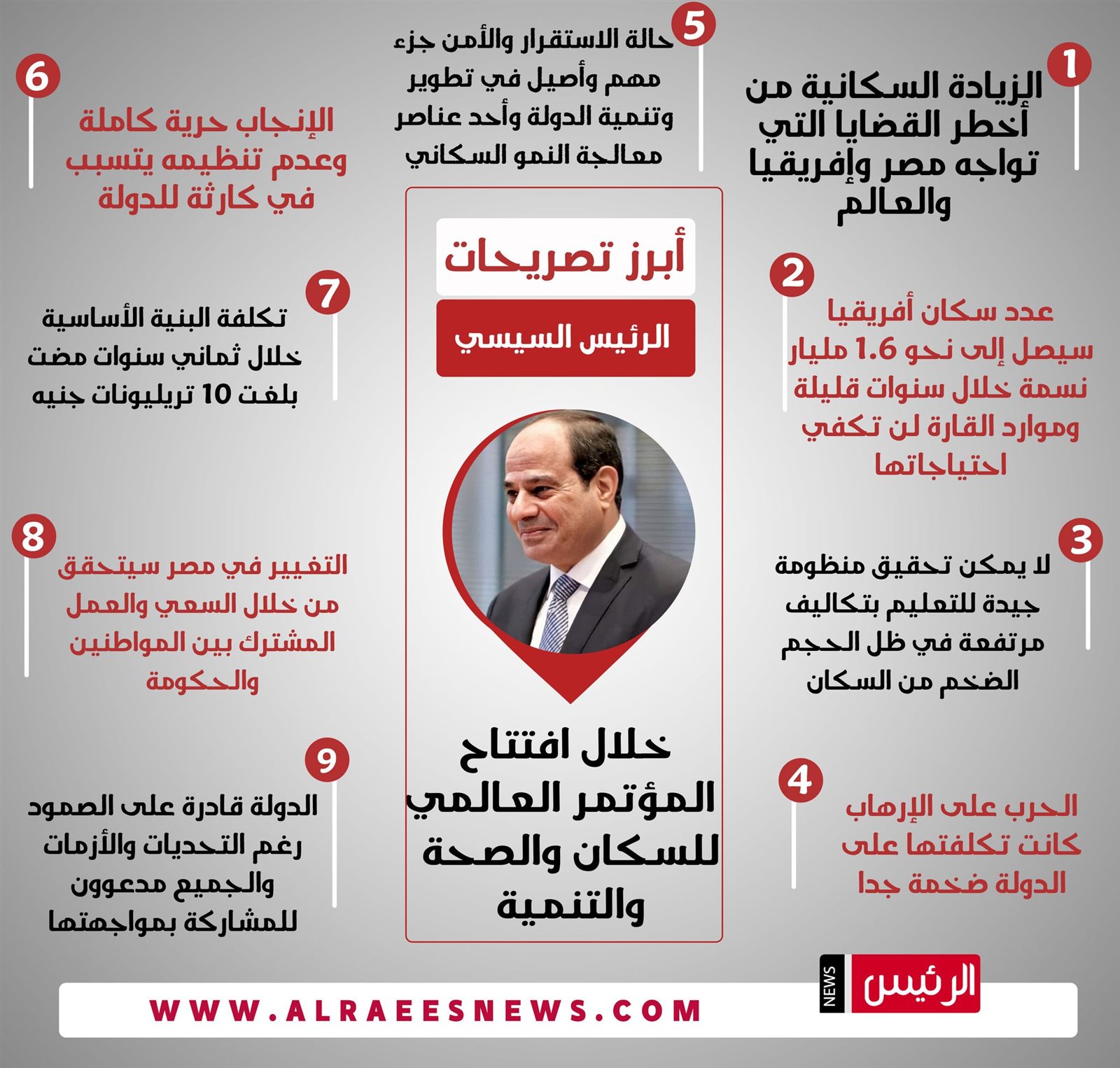 وجاءت أبرز تصريحات الرئيس السيسي خلال افتتاح المؤتمر العالمي للسكان والصحة والتنمية بالعاصمة الإدارية كالآتي: