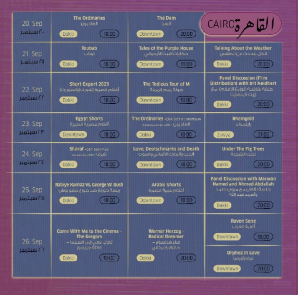 جدول عروض أسبوع أفلام جوته ٢٠۲٣ في القاهرة
