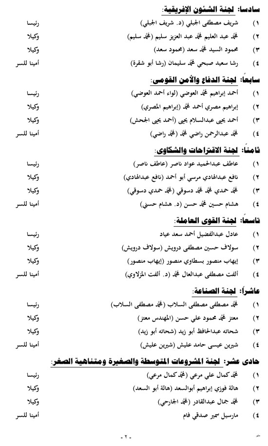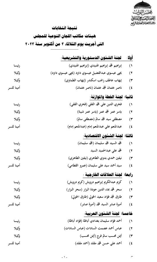 أسفرت انتخابات هيئة مكاتب اللجان النوعية (25 لجنة برلمانية) بمجلس النواب بدور الانعقاد الرابع من الفصل التشريعي الثاني عن فوز كل من: