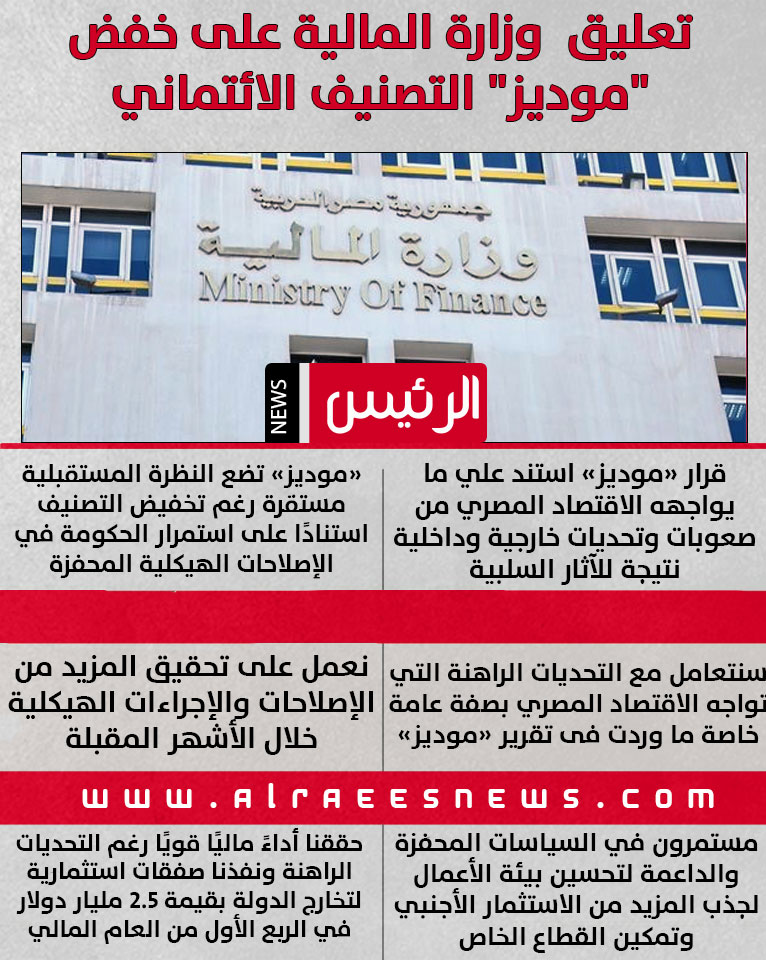 تعليق وزارة المالية على خفض "موديز" التصنيف الائتماني لمصر