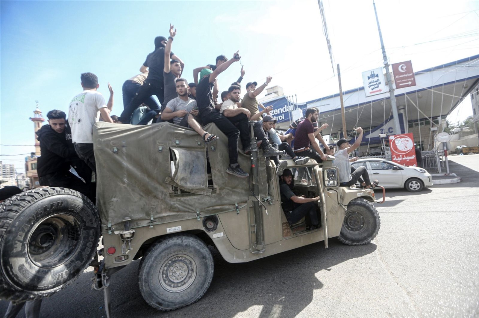 وانتشرت صور مدرعات إسرائيلية يقودها فلسطينيون بعد استحواذهم عليها، فضلًا عن مقاطع فيديو لسيارات دفع رباعي يقودها مقاتلون فلسطينيون تجوب شوارع بلدات ومدن إسرائيلية، فضلًا عن عشرات الأسرى الإسرائيليين رفقة مقاتلين فلسطينيين تم نقلهم إلى غزة، وهو ما تم تحقيقه في الغالب في وقت مبكر من الهجوم.