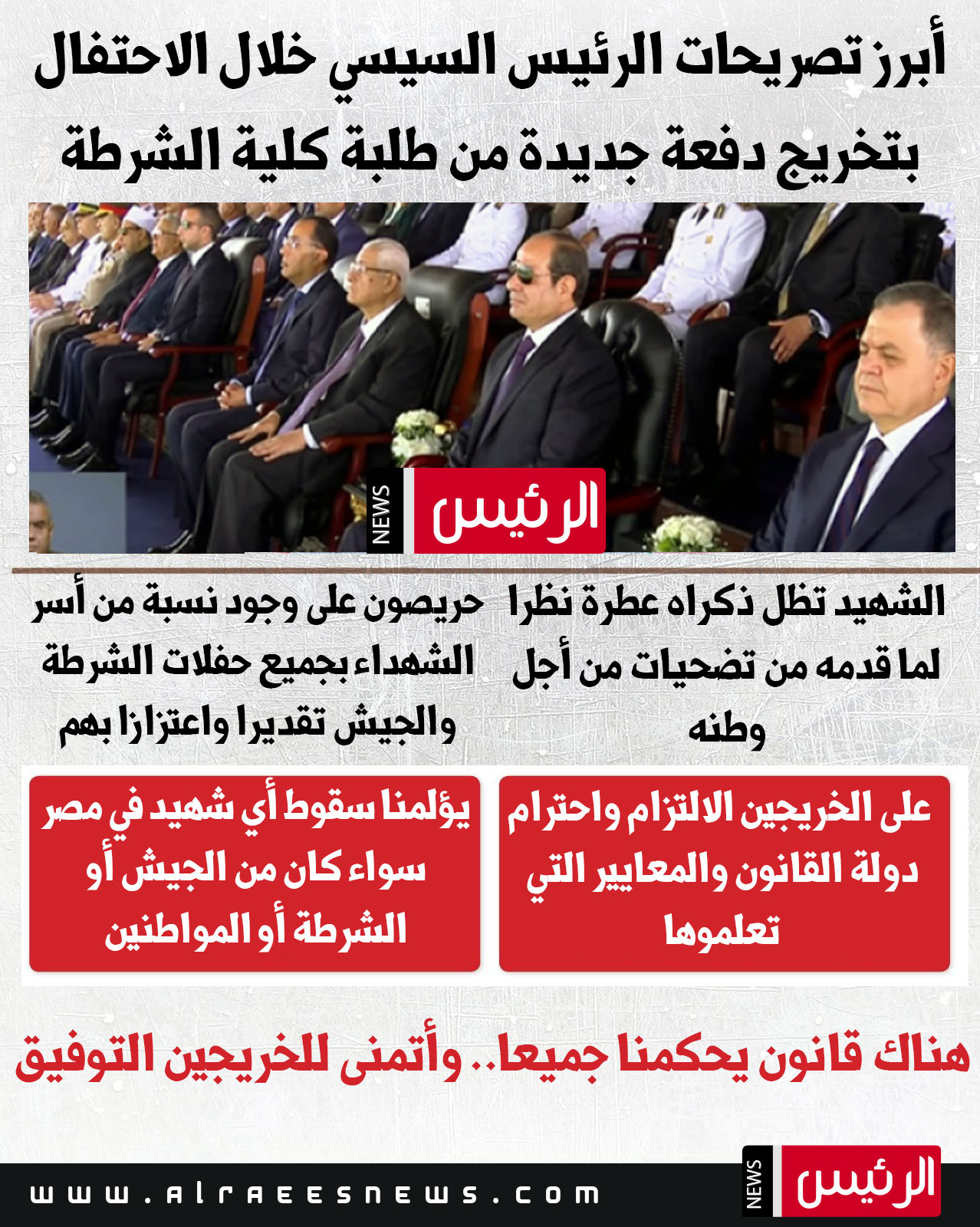 وجاءت أبرز تصريحات الرئيس السيسي خلال الاحتفال بتخريج دفعة جديدة من طلبة كلية الشرطة كالآتي: