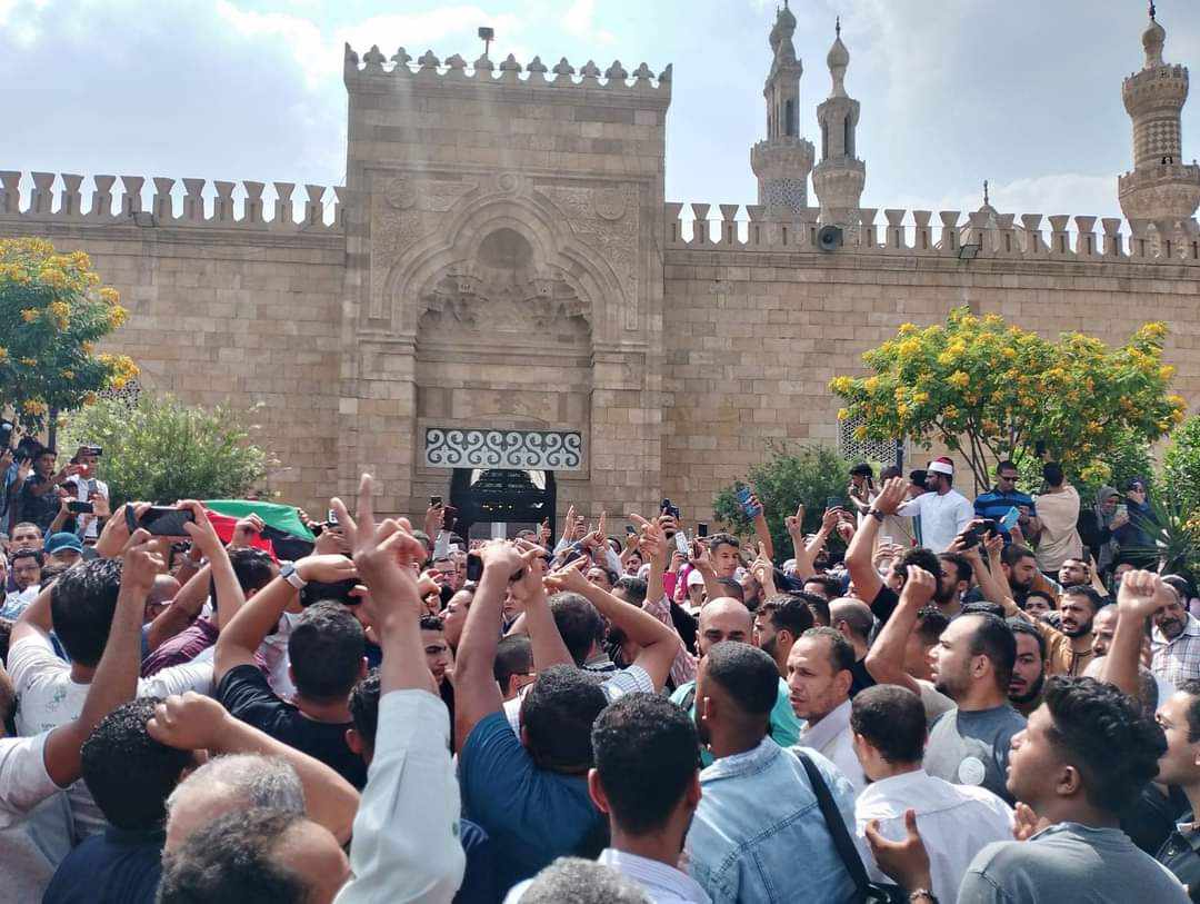 وجاءت الهتافات استجابة لدعوات بالتظاهر داخل الجامع الأزهر تضامنا مع الشعب الفلسطيني.