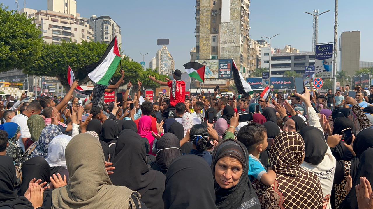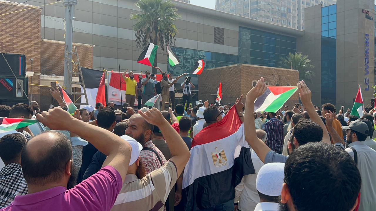 وحمل المتظاهرون الأعلام الفلسطينية والمصرية، مرددين الهتافات المنددة بمحاولات تصفية القضية الفلسطينية، وأخرى داعمة للسيادة المصرية، ورفض القصف الإسرائيلي للمدنيين بقطاع غزة.