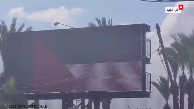 وبعد عدة مشاهد، تتبدل الصورة ليظهر العلم الفلسطيني على لوحة الإعلانات التي قال رواد مواقع التواصل الاجتماعي إنها في تل أبيب.