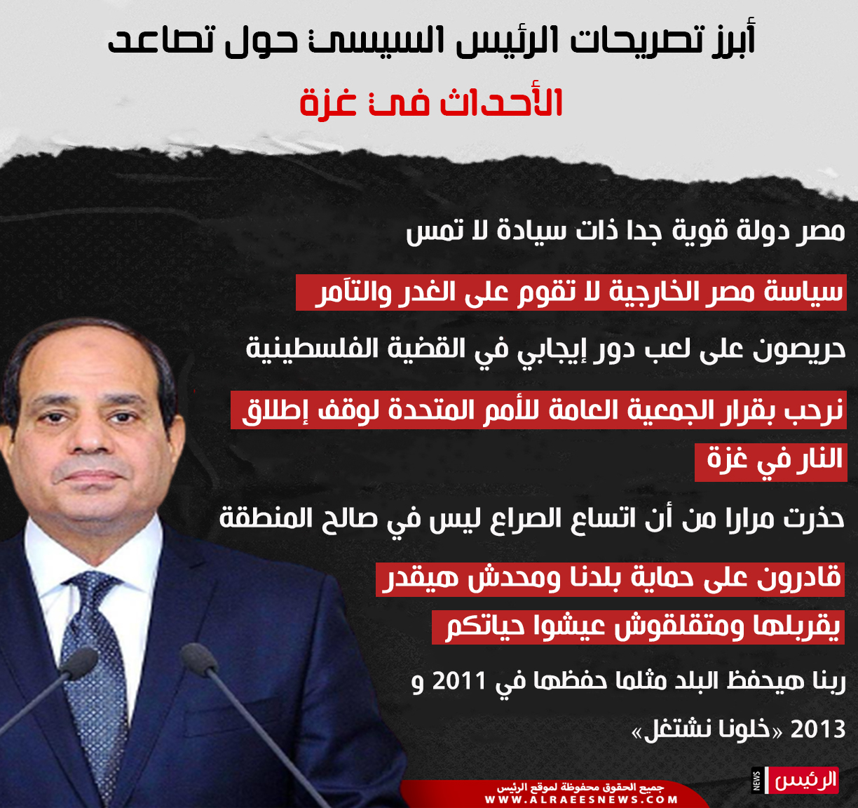 وجاءت أبرز تصريحات الرئيس السيسي حول تصاعد الأحداث في غزة وهي كالآتي:
