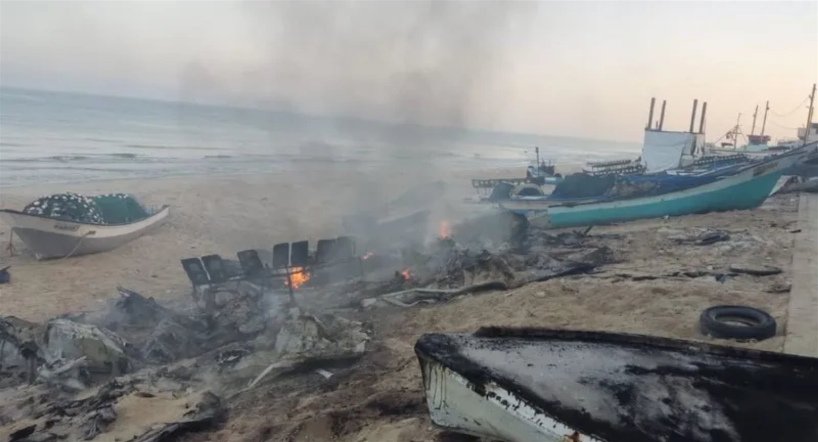 وأكدت مصار محلية أن القصف الإسرائيلي أحرق مراكب صيد كانت على ساحل رفح جنوبي قطاع غزة.