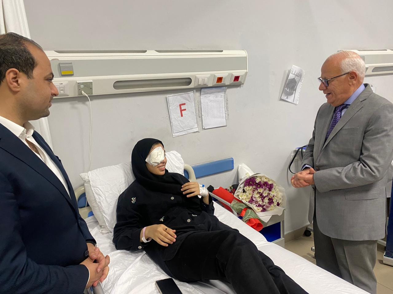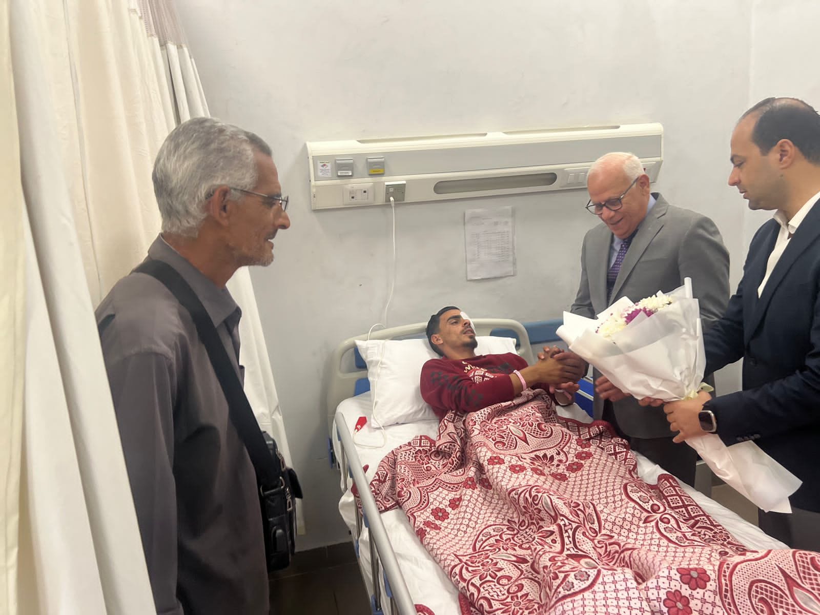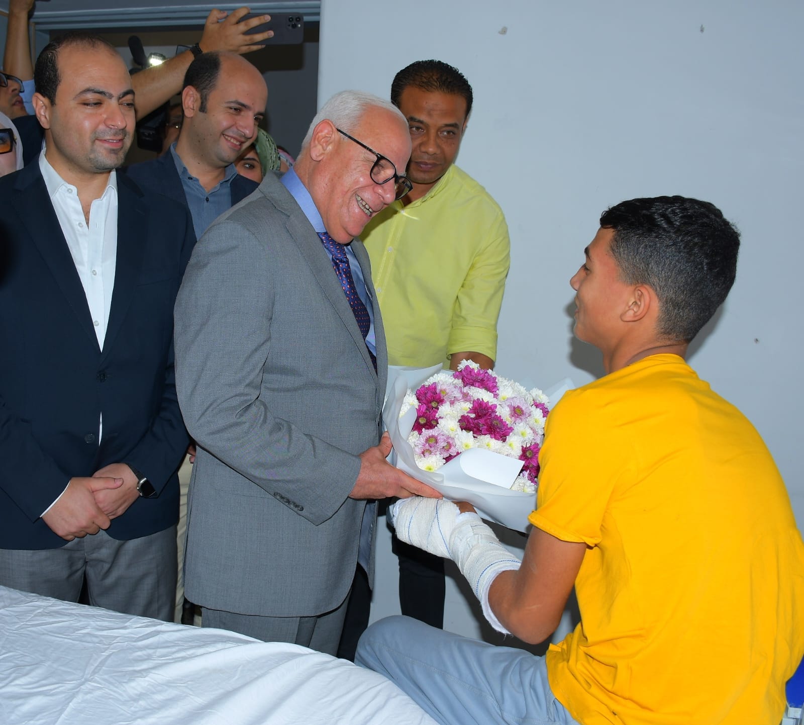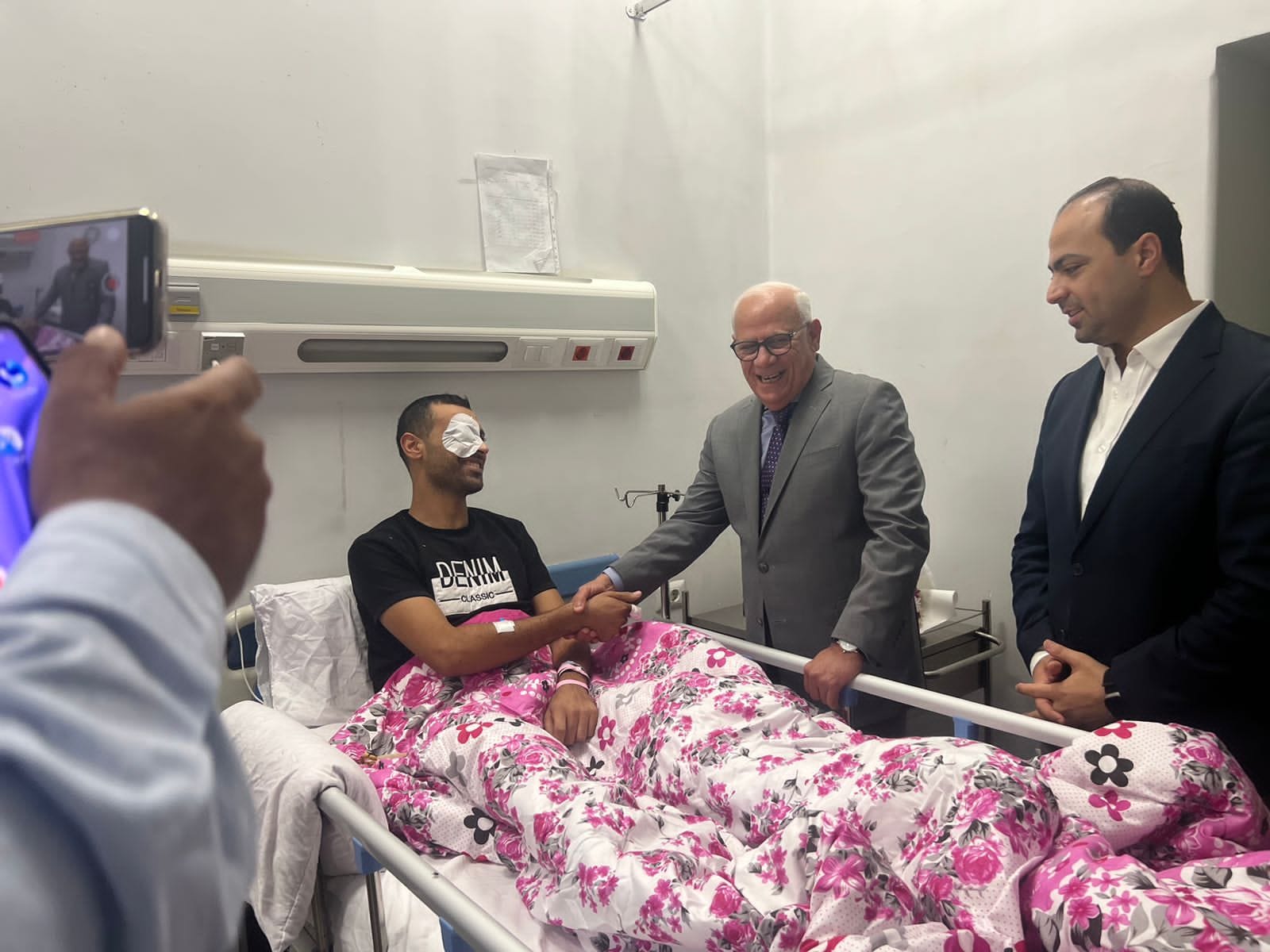 بـ"الورود والهدايا".. محافظ بورسعيد يزور مصابي غزة في مستشفى الرمد (صور)