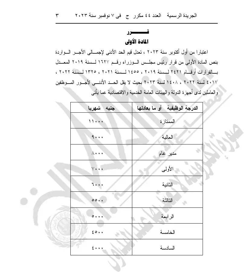 الدرجة السادسة 4000 جنيه بدلًا من 3500 جنيه.