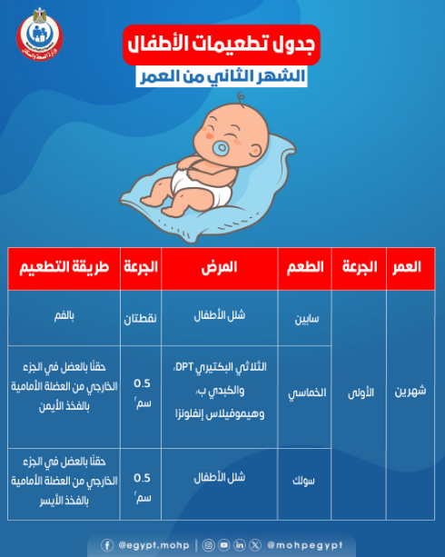 ولمعرفة جدول تطعيم الأطفال في المراكز الصحية 2023: