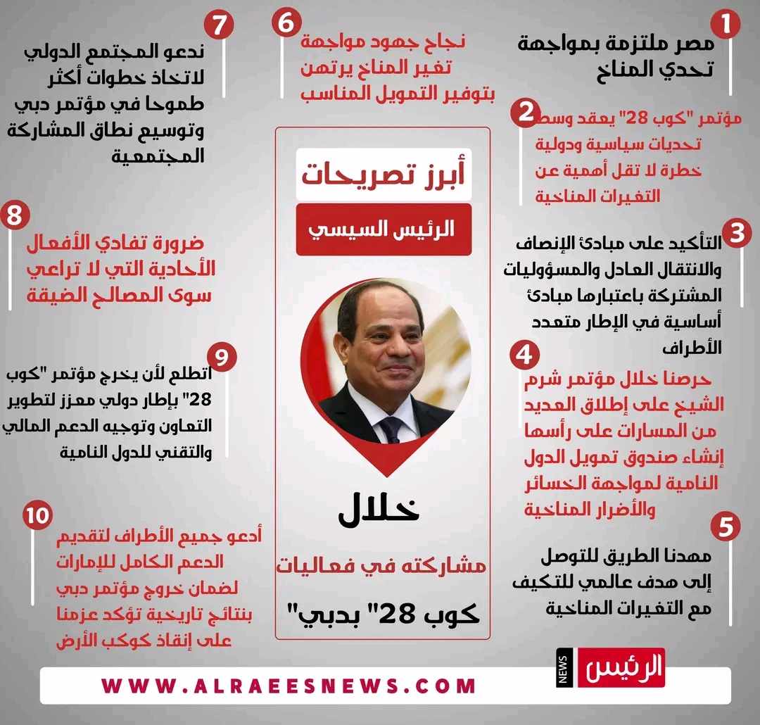 أبرز تصريحات الرئيس السيسي خلال مشاركته في فعاليات "كوب 28" بدبي