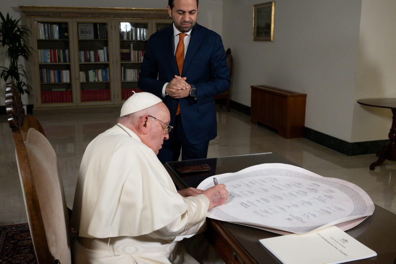 شيخ الأزهر والبابا فرنسيس يوقٍّعان على بيان أبوظبي المشترك من أجل المناخ