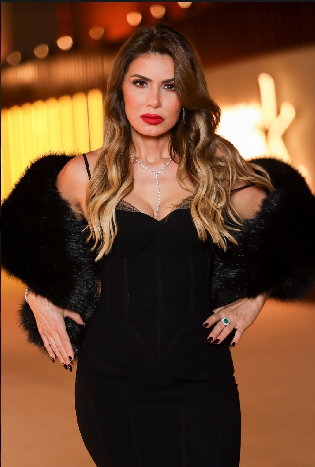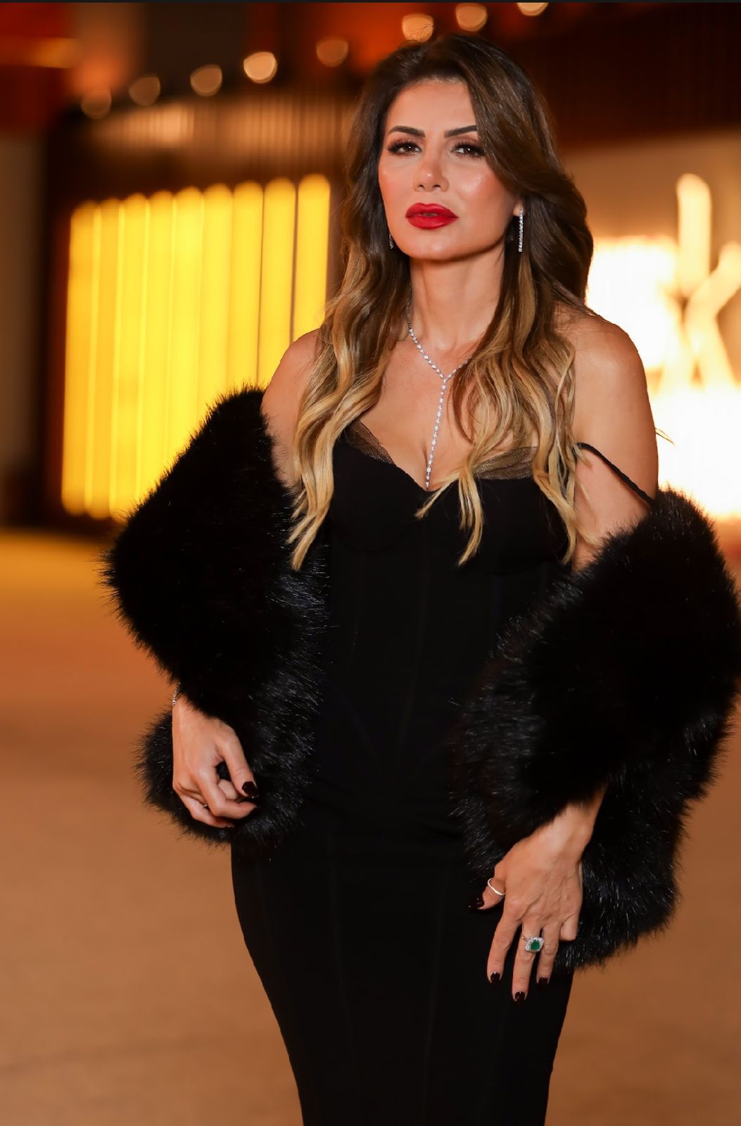 ارتدت نجلاء بدر فستان أسود طويل، من تصميم فريدة تمراز التي تحرص على التعاون معها كل عام، وأجرت على التصميم الأصلي بعض التعديلات حتى يصبح أكثر أناقة.