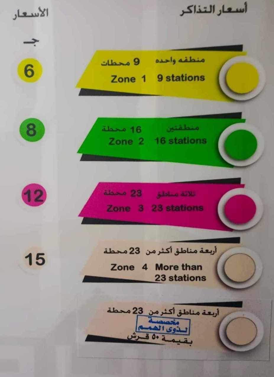 - سعر تذكرة المترو 4 مناطق «أكثر من 23 محطة» لذوي الهمم بـ50 قرشا.