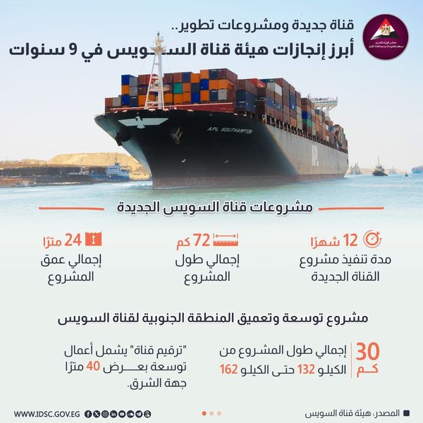 - 12 شهرًا مدة تنفيذ مشروع القناة الجديدة.