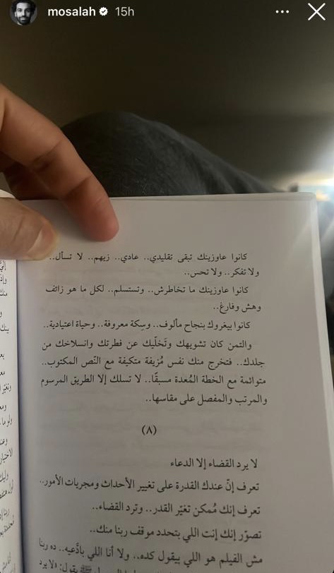 وأضاف: “هذا هو تعليقي وإجابتي: "أنا واحد من ملايين مشجعي ومحبي كابتن مصر الاستثنائي محمد صلاح، وسعدت جدا وتشرفت إنه يقرأ أحد كتبي، وفخور بأنه يشير لبعض الفقرات على ستورى صفحته، ده شرف كبير جدا جدا لي، أنا حاليًا أقيم وأعمل في ليفربول، ولا تتخيلوا الناس في ليفربول وفى إنجلترا كلها بيحبوا محمد صلاح قد إيه، مش بس بيحبوا محمد صلاح، دول بيعشقوا مصر، وبيحترموا كل مصرى ويقدروه”.
