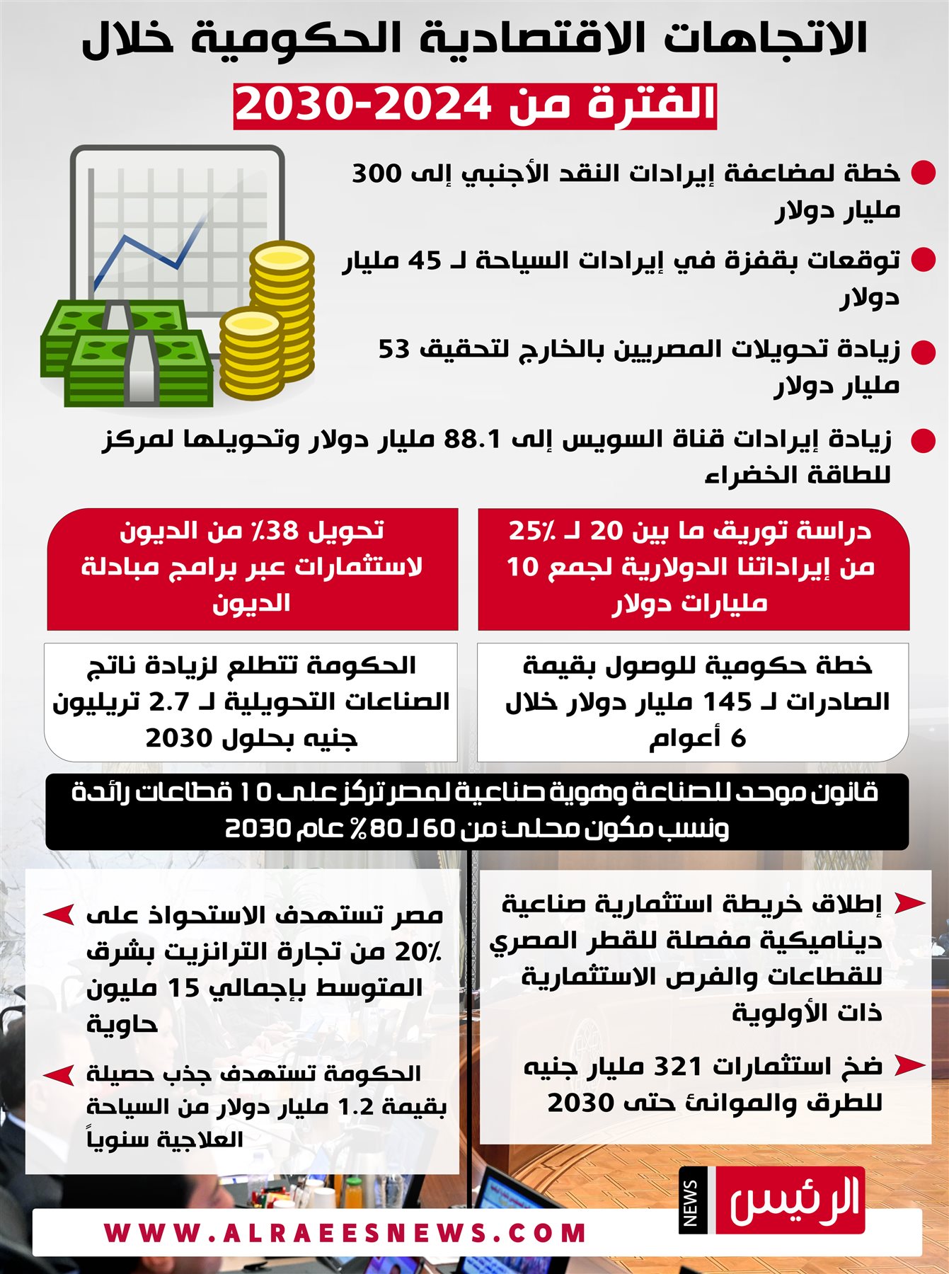 وفي السياق، يستعرض “الرئيس نيوز” الاتجاهات الاقتصادية الحكومية خلال الفترة من 2024-2030 وهي كالآتي:
