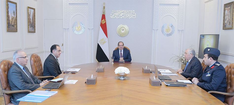 جاء ذلك خلال اجتماع الرئيس السيسي اليوم الأربعاء مع الدكتور مصطفى مدبولي رئيس مجلس الوزراء، والسيد القصير وزير الزراعة واستصلاح الأراضي، والدكتور هاني سويلم وزير الموارد المائية والري، والعقيد الدكتور بهاء الغنام المدير التنفيذي لجهاز مستقبل مصر للتنمية المستدامة.